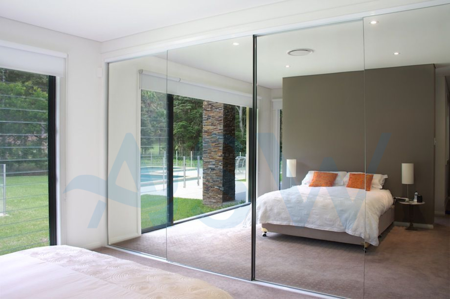 – Sliding doors to robes with frameless mirrored doors